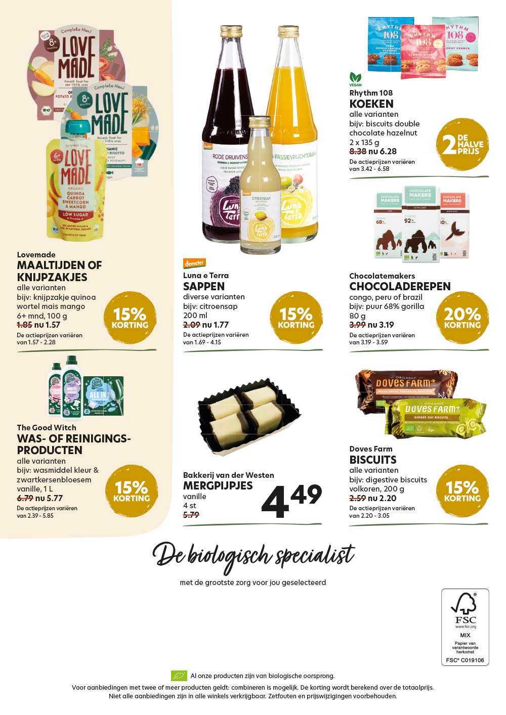In de landelijke folder van de Biologisch Specialist vind je de meeste van onze aanbiedingen, die lopen van woensdag tot en met dinsdag. Soms wijken wij af van de afgebeelde merken of voeren wij niet hetzelfde assortiment. Onze bakkerij bijvoorbeeld heeft eigen acties en die vind je hieronder. Ontdek in de winkel wat we je nog meer aanbieden!