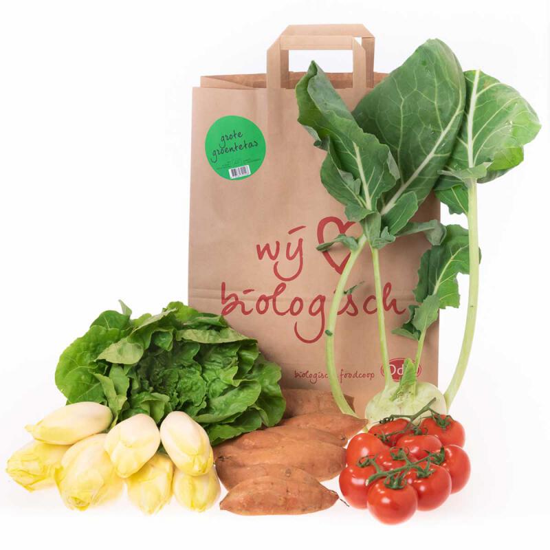 Je kunt kiezen uit vijf verschillende tassen. Van kleine groentetas (voor 1 à 2 persoons huishoudens) tot een grote familietas. Nieuwsgierig wat er deze – of volgende week in de tas zit? Neem hier alvast een kijkje.